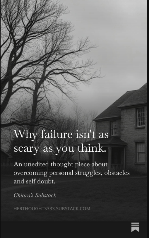 Here is the link to my very first ever Substack post: https://herthoughts333.substack.com/p/why-failure-isnt-as-scary-as-you